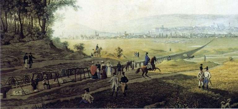 “Work on the 7.6 kilometre railway section began in May 1827. The company issued shares, a total of 513 shares were sold, among the shareholders were the palatine himself, György Sina, one of the richest men in the empire, as well as the banker Móric Ulmann and István Széchenyi. However, there was not enough money to use hardwood, so they built the course out of pine. The rapid work was hampered by the lack of manpower, so the palatine also ordered the military, but an additional problem was that one of the company partners and also the construction manager, János Bodmer, died unexpectedly in the early summer of 1827.” [1]