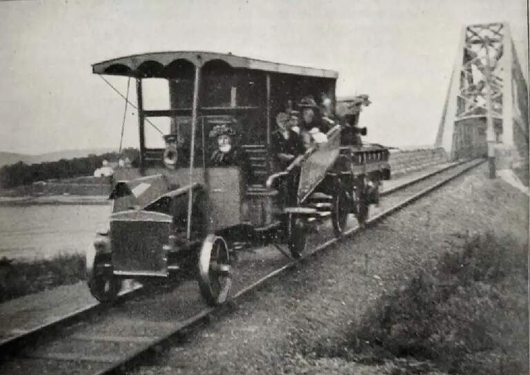Cross comments: “The Guidovia was highly unusual in that it featured petrol-engined solid-rubber-tyred vehicles which followed two parallel 200-mm wide concrete tracks. Inside these, conventional metre-gauge Vignole 9 kg/m rails acted as a guide path for flanges located on the inside of the wheels. … Iron tie-rods separated the rails at a fixed gauge, with conventional sleepers unnecessary since the weight of the vehicles was placed off the rails and on the concrete pathways. Known as the Laviosa guidance system, it was invented by the Corazza brothers, who owned the line. Rubber tyres were chosen because they gave twice the adhesion of steel wheels acting on steel rails, and made it possible for the vehicles to overcome the numerous steep gradients on the slopes of Monte Figogna.” [3: p334]