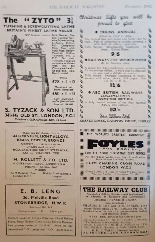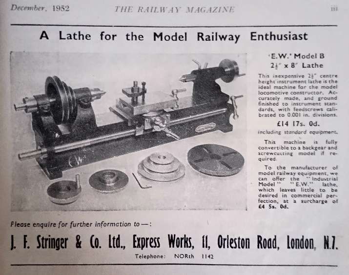 The December 1952 edition of The Railway Magazine carried the advert. We know that it was also carried in the June 1952 magazine with the lathe offered at the same price as in the December issue of the magazine. This was at a time when a skilled man could earn around £9 a week!