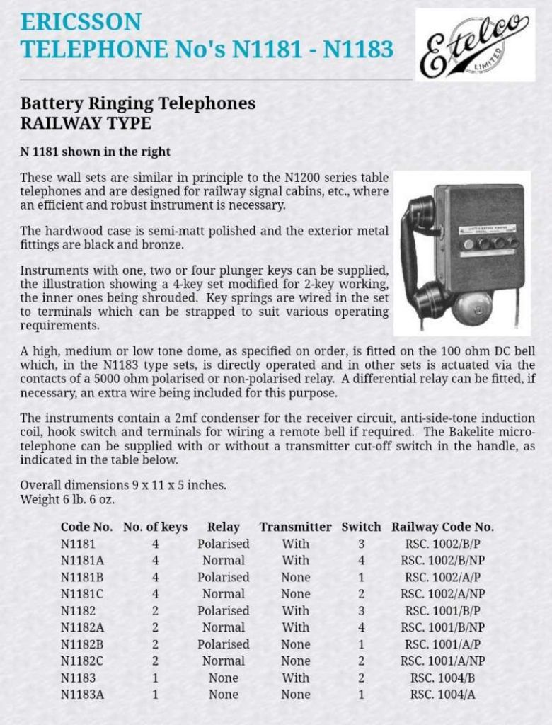Ericsson Bulletin No 17 describes the phones which it supplied to British Railways.A copy of the article can be found on page 40 of that bulletin. [4]
