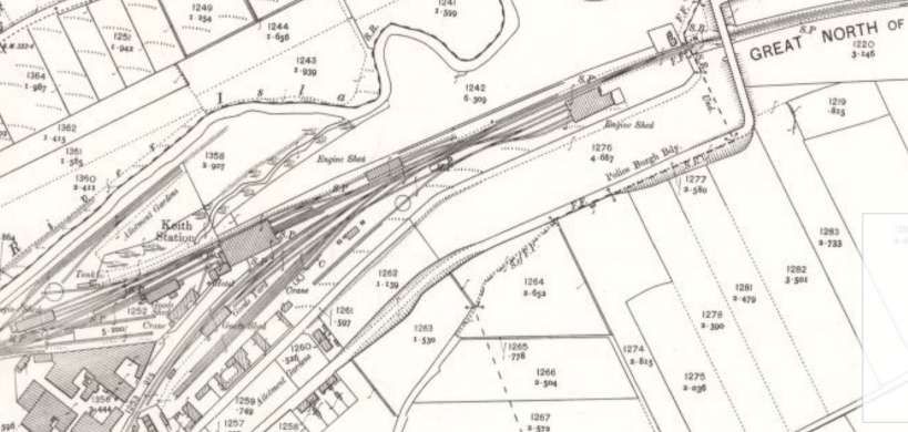 Keith Station as it appears on the 25″ OS mapping of 1903, published in 1905. [3]