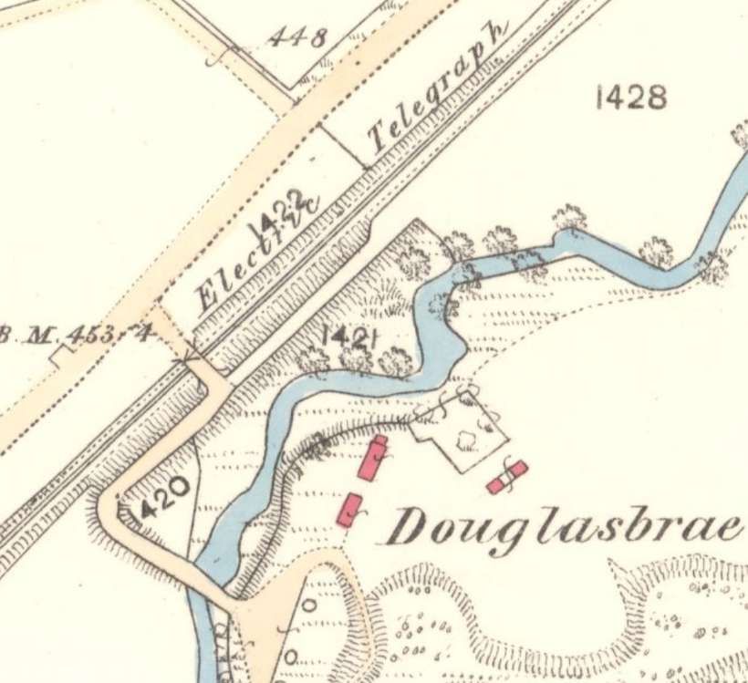 The next overbridge carried the access road to Douglasbrae Lime Kilns over the River and the railway. [13]
