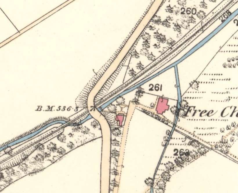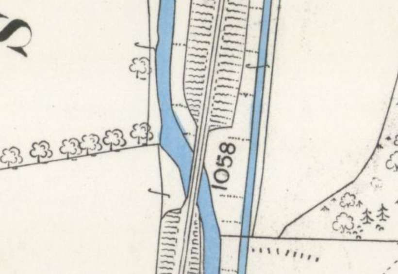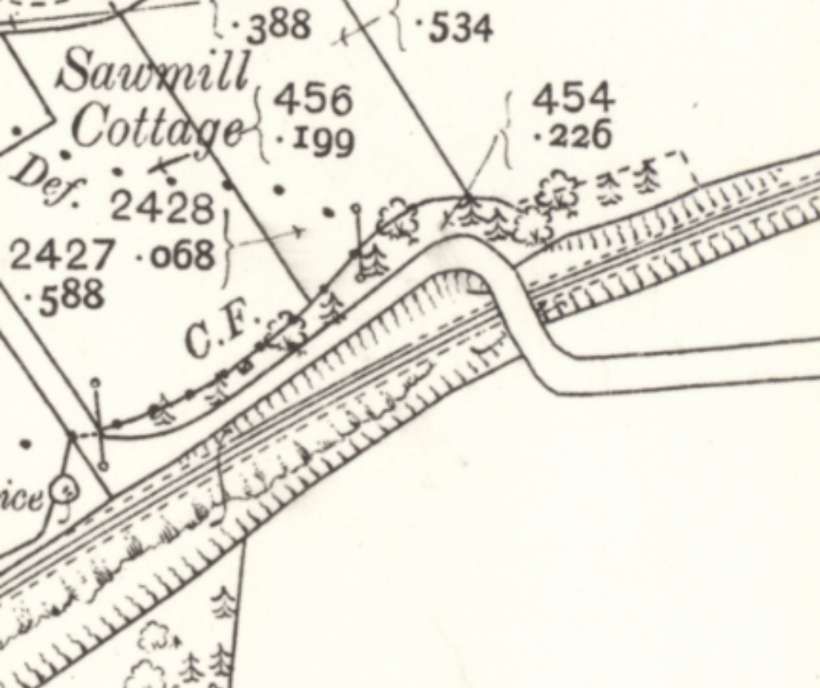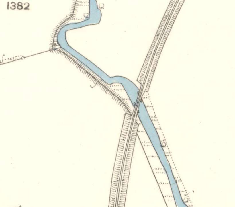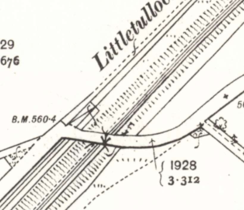 A short distance to the Southwest the line passes under the B9014, down here on the 1st Edition 25″ Ordnance Survey [20]