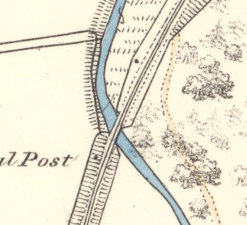 The railway remains on the South side of the river for a very short distance before crossing back to the other bank, travelling in a southerly direction. [13]