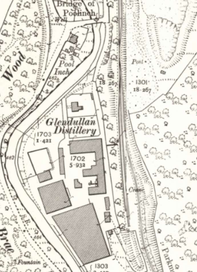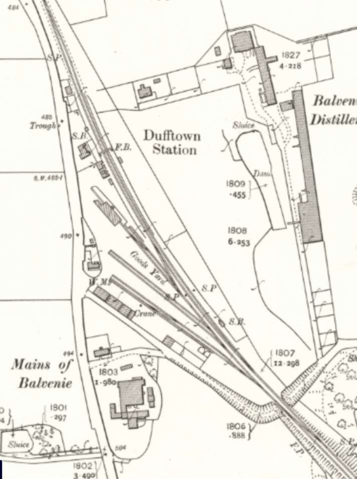 The next map extract shows the junction close to the Parkmore Distillery, where a branch serving Parkmore Lime Works and Glendullan and Mortlach distilleries left the main line. …
