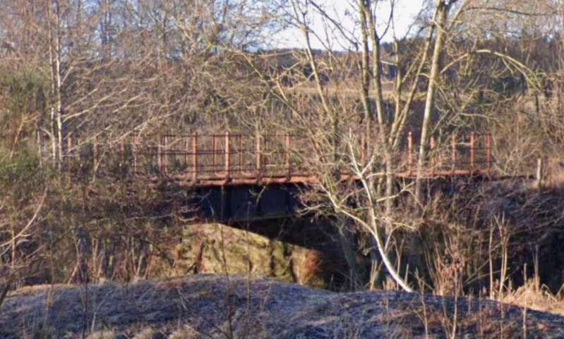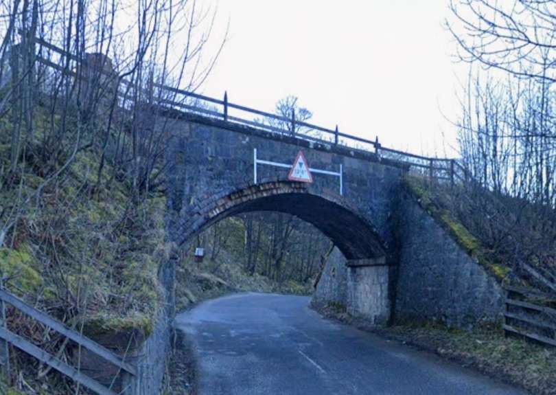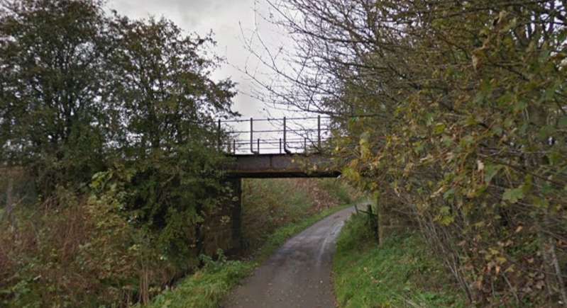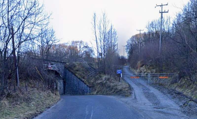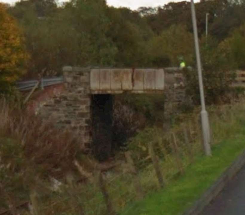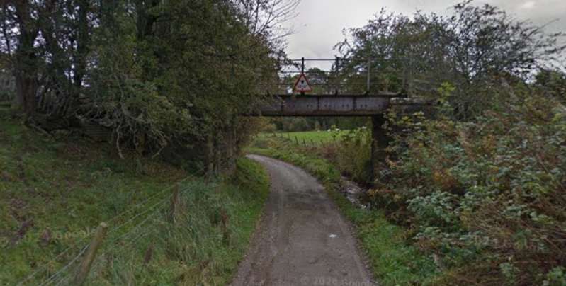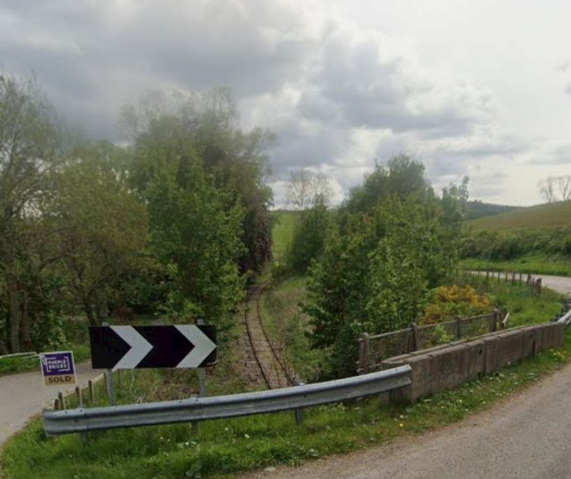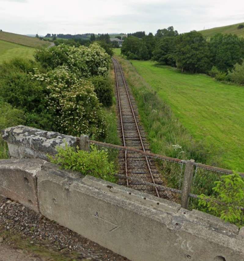 The bridge which carries the B9014 across the railway, seen from the road to the Northeast of the line. [Google Streetview, June 2023]