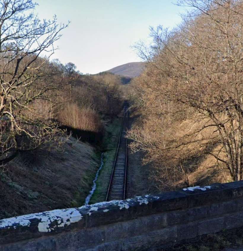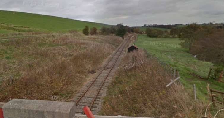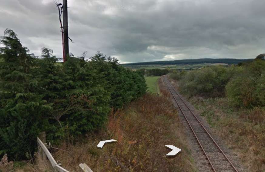 Looking Northeast along the line from the B9014 bridge. [Google Streetview, May 2022]