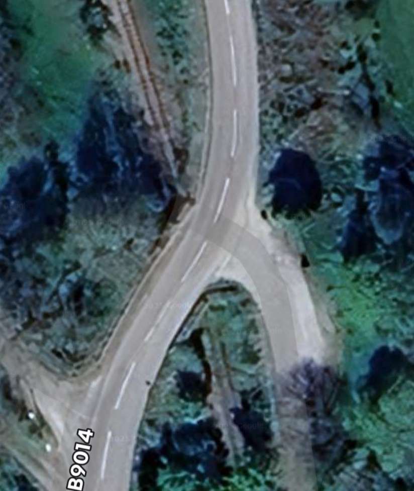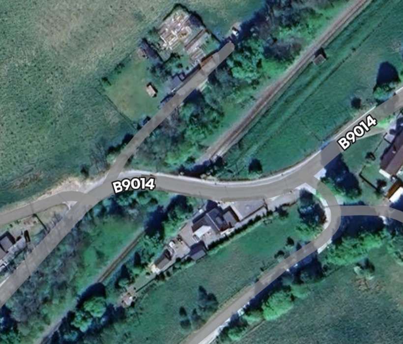 The B9014 crosses the line once again. [Google Maps, January 2026]