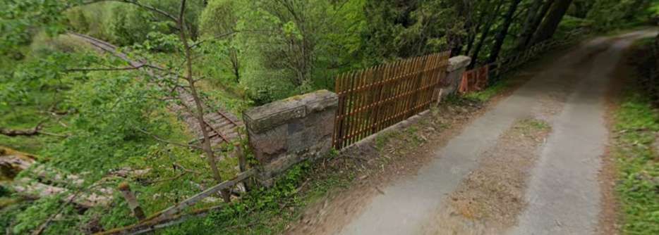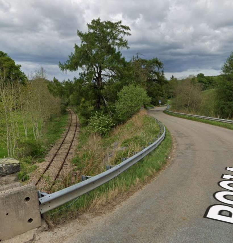 At the same location, the other bridge parapet and the view ahead along the line. [Google Streetview, May 2022]