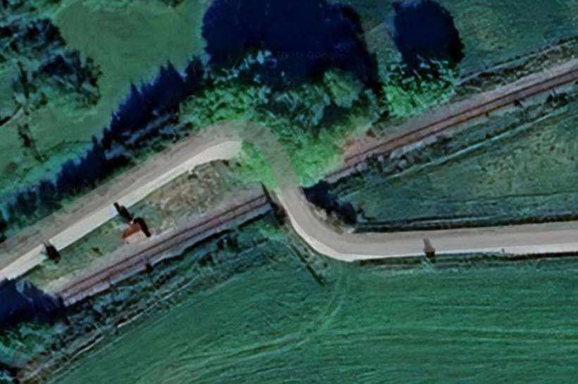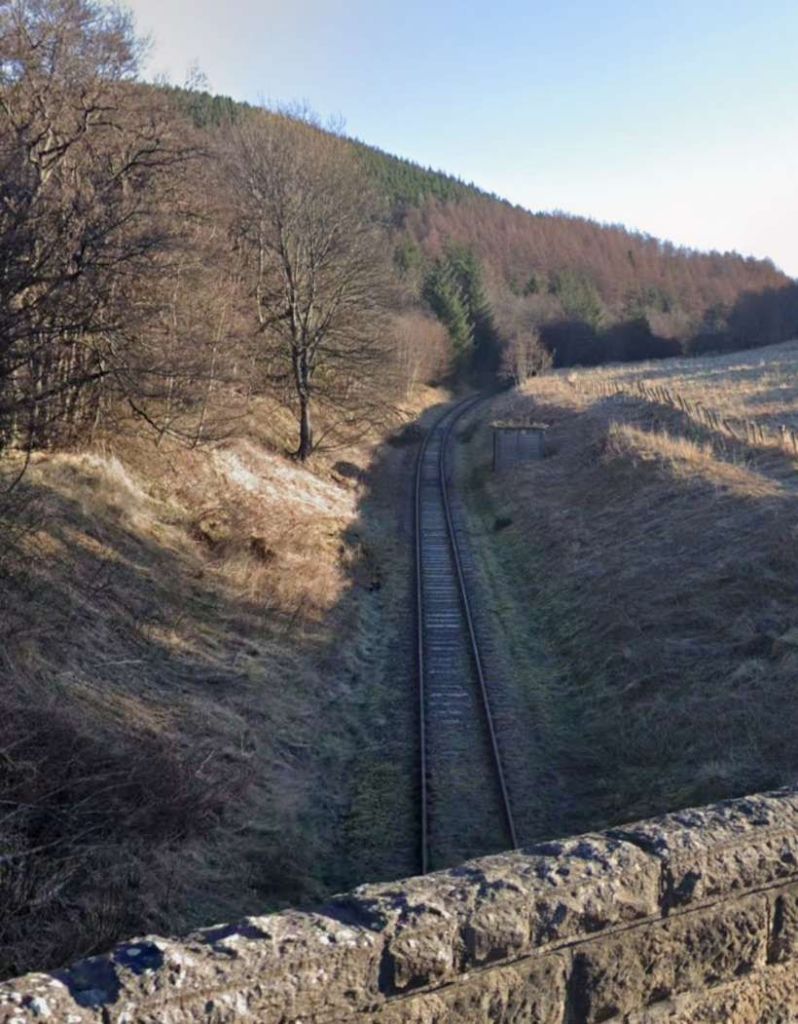 A view from the West looking past the platelayer’s hut towards the road bridge. [Google Streetview, May 2022]