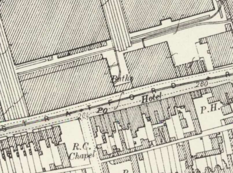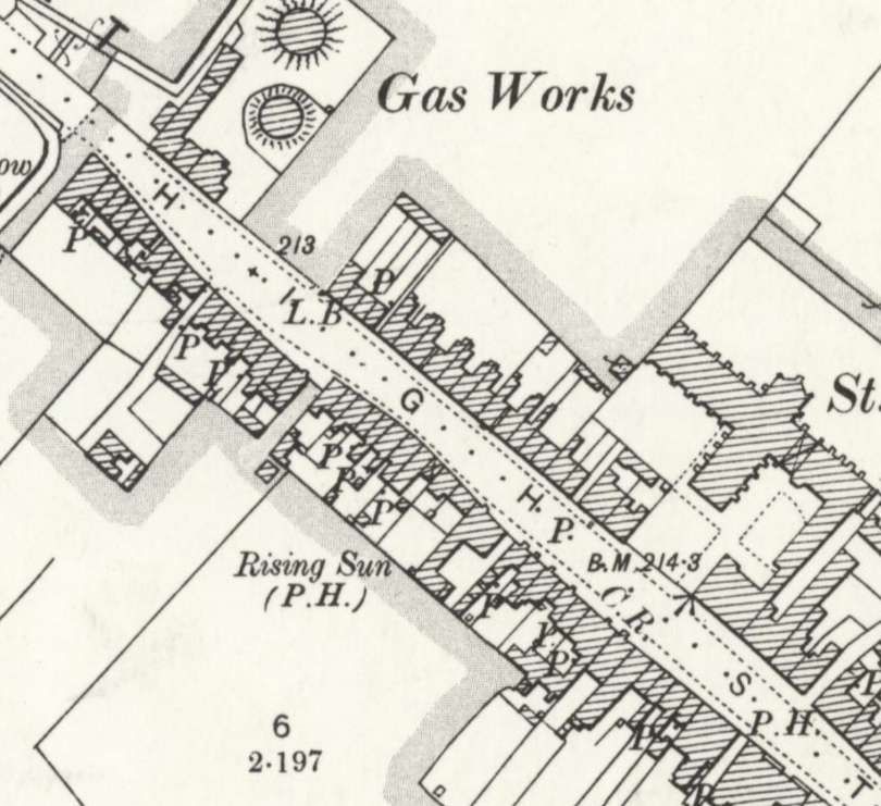 Edwards says that at the junction adjacent to the Forresters Arms, “The tramway turned right … to continue northwards beyond The Cock and The Bull hotels for another half mile to terminate outside The Barley Mow public house, the last building in the town.” [13: p17]