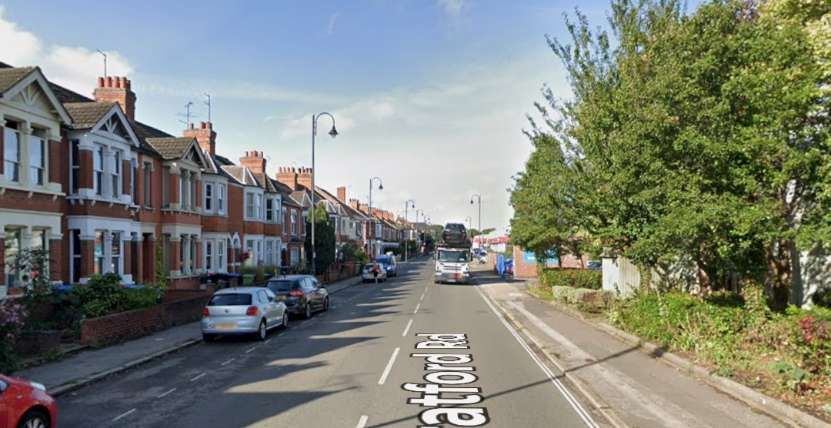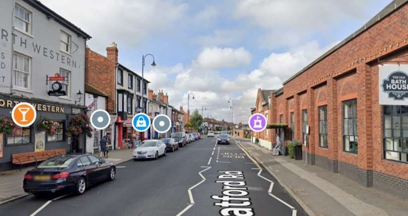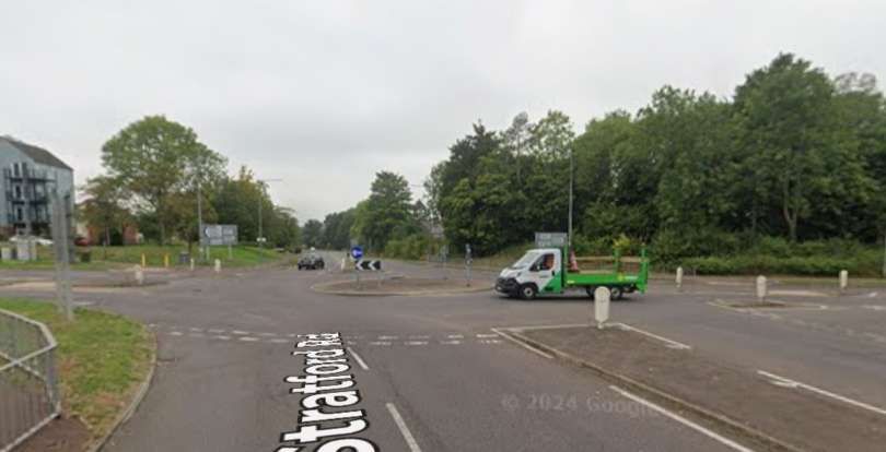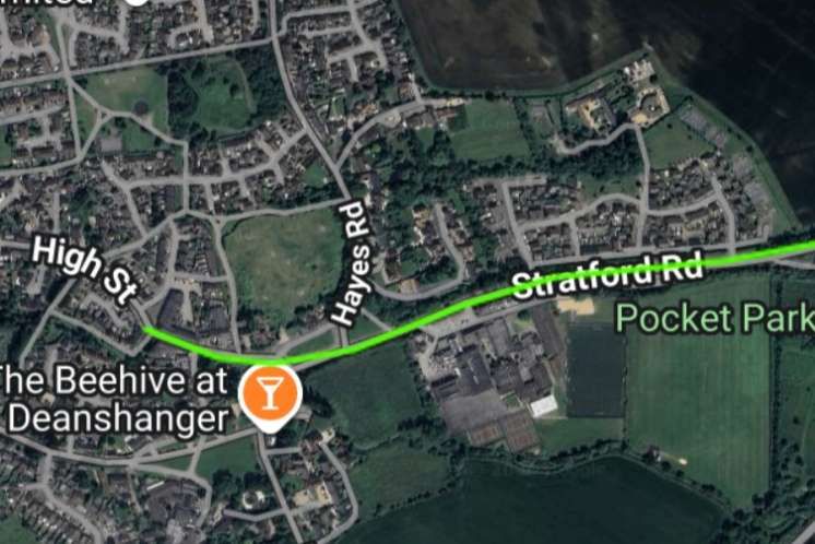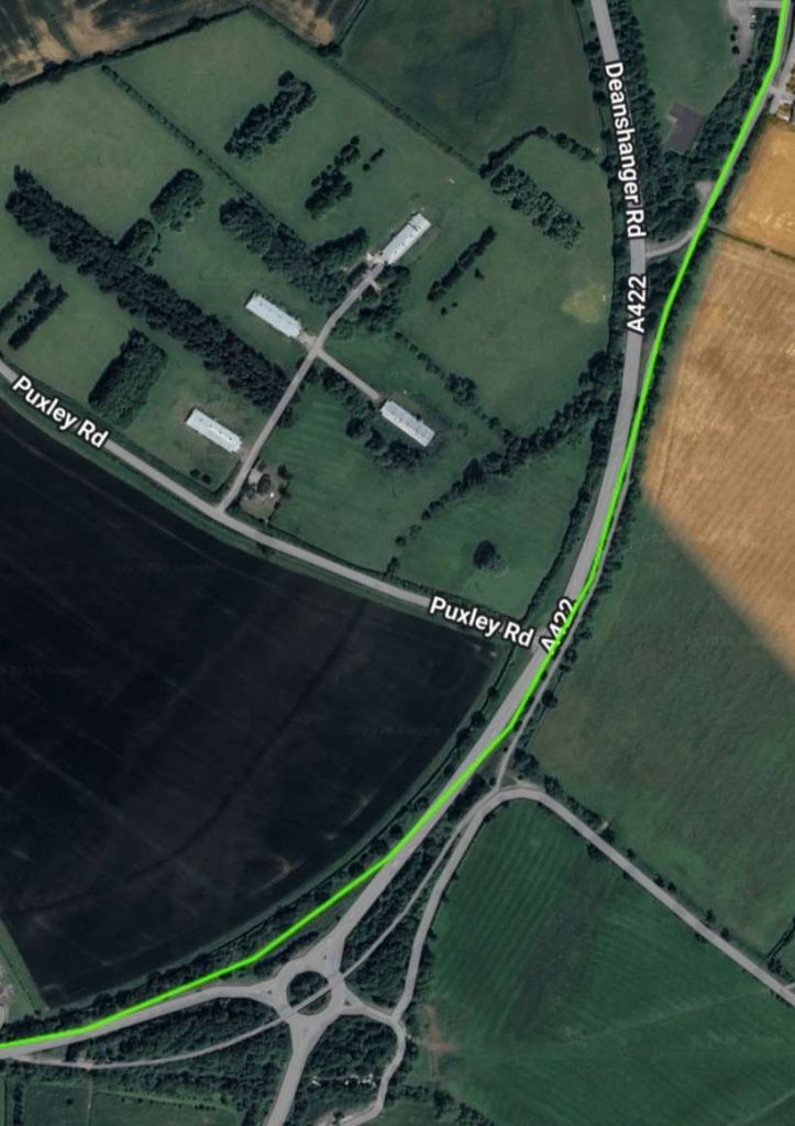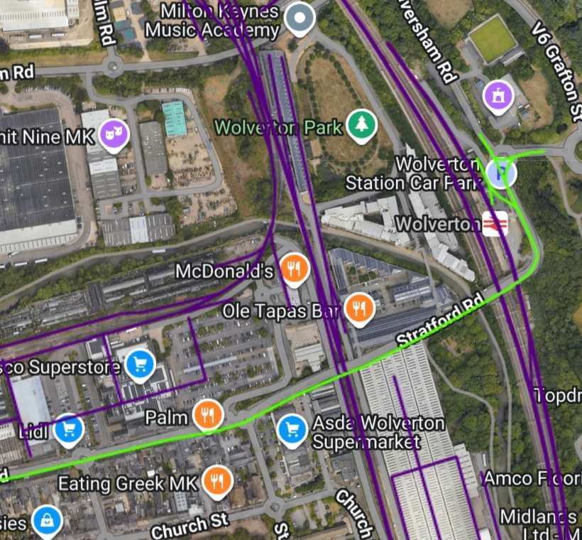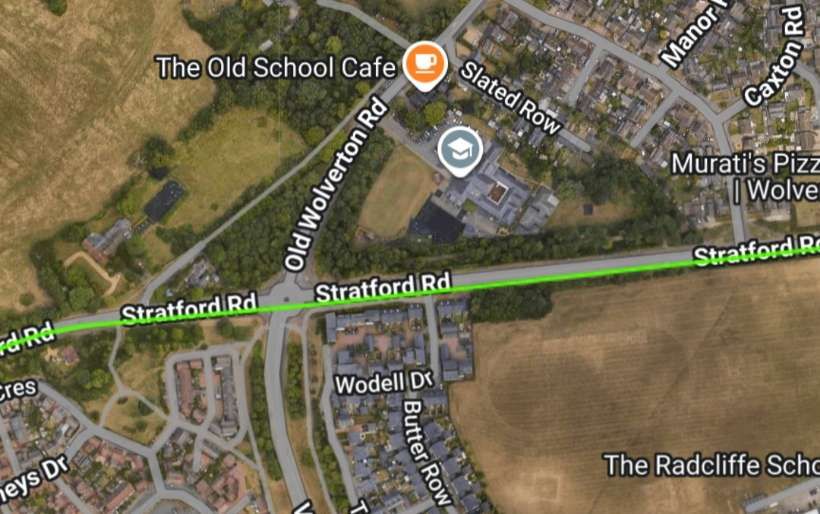 The next three Google Streetview images take the route of the tramway across the modern roundabout at the junction between Stratford Road and Old Wolverton Road to the original junction between the two roads. …