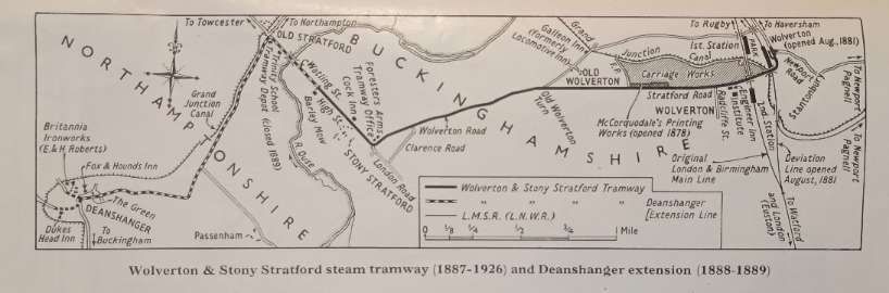 “Mainly by reason of the growth of the London North Western Railway works at Wolverton in the late 1870s, and the establishment of McCorquodale’s printing works alongside in 1878, a scheme to link the old market town of Stony Stratford, on Watling Street, with the London & North Western Western Railway station at Wolverton by means of a light railway began to take tangible form in 1882.” [1: p547]