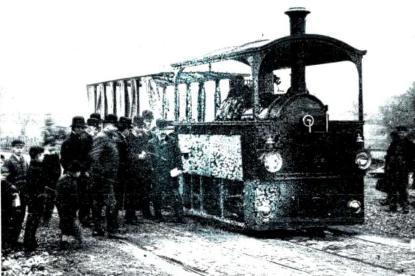 The featured image for this article shows a Bagnall saddle-tank engine and train of two 100-seat workmen’s cars in L.N.W.R. livery on the Wolverton and Stony Stratford Tramway.