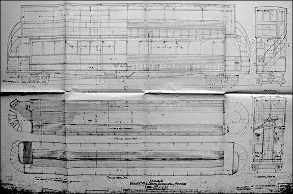 Lees says that “Another car, upholstered, accommodated 80 passengers and was 38 ft. long and 6 ft. wide; and one [which] seated only 50 passengers, was 24 ft. 6 in. long, and 5 ft. 9 in. wide.” [1: p554]