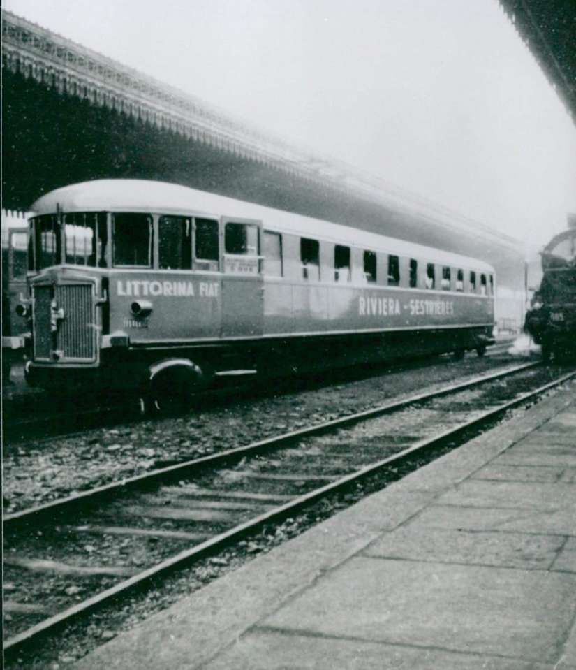 During the winter of 1934/35 a railcar service was trialed between Ventimiglia and Oulx. Fiat designed these vehicles used. The Fiat automotrici were modern, efficient and beautifully designed. “‘The Littorina’ can be regarded as a co-production of Mussolini and Fiat president Agnelli. The new train type helped achieve Mussolini’s political goals, proudly carrying the symbol of his fascist party on its front.” [16]