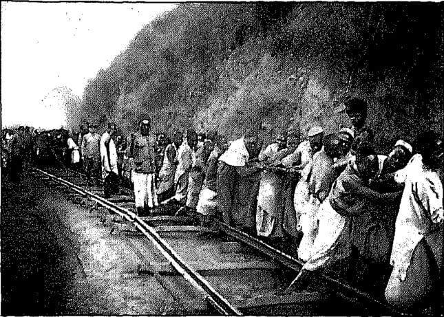 In contrast, the costs of transporting the components to the construction site from the then-terminus of the Usambara Railway at Mombo, the execution of the foundation work, and the procurement of cement, water, etc., required considerable expenditure, especially since, neither the cattle-herding Maasai from the surrounding areas were available to work, nor could draft or pack animals be kept due to the tsetse fly. Roads also had to be built almost everywhere for transporting the materials, along which the supports, station components, and building materials were hauled individually by porters, during which many a sack of cement and many a barrel of water leaked quite by accident along the way, thus becoming lighter. The wages were relatively low, amounting to 45 heller or 60 pfennigs per day with free board including rice. The workers’ housing was also inexpensive to build.  They consisted of reed sheds or reed huts, which, at best, were covered with clay. [4: p33-34]