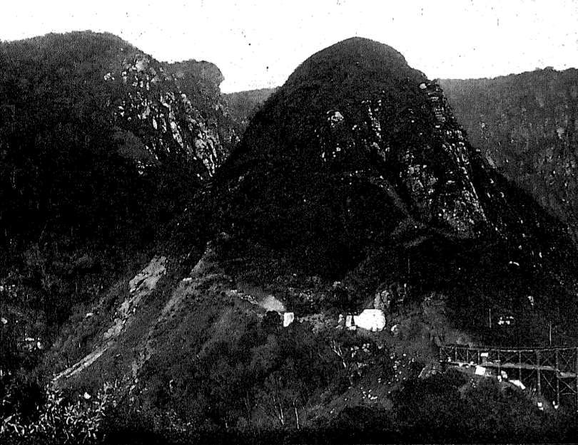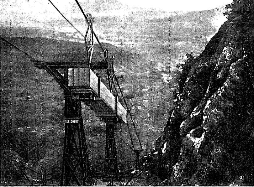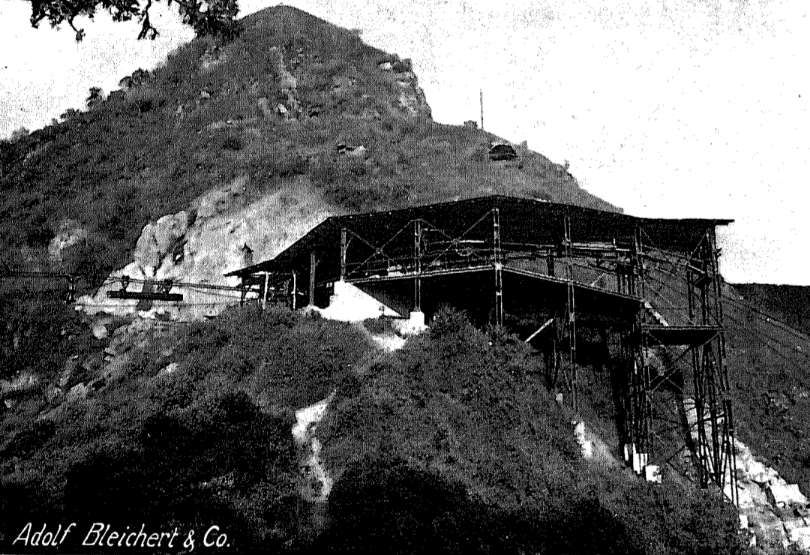 This photograph was taken during construction of the first ‘winkelstation’. the cableway flanked the side of the promontory. ‘The ‘winkelstation’ is under construction to the right of this image. [4: p25]