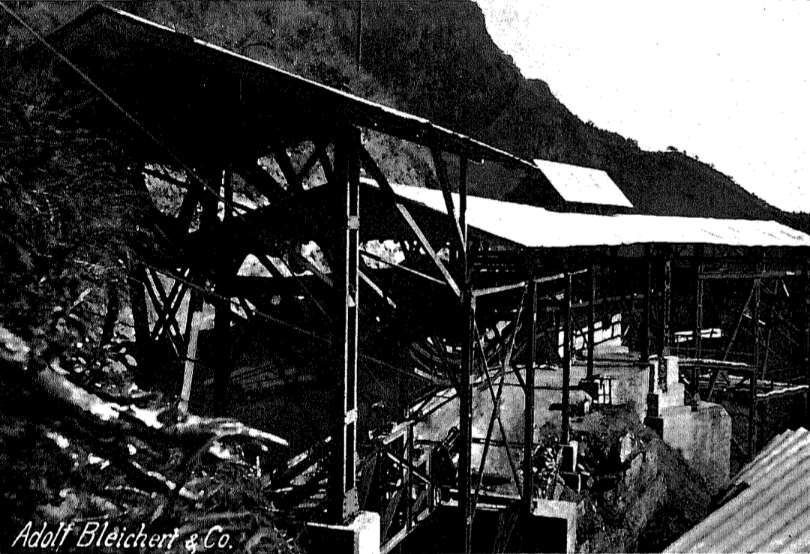 As far as the terrain allowed, naturally existing support points were utilized. For example, just below Willkelstation No. 2, a support could be erected just before the drop into the Ngoha valley; however, beyond this point, no support was possible before the opposite valley edge, which was 210 m lower and 100 m away.