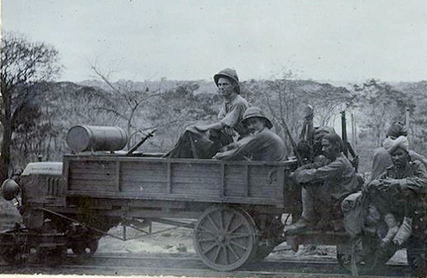 These light railways allowed the German Schutztruppe, led by Lieutenant Colonel von Lettow, to move heavy loads (such as artillery pieces from the sunken cruiser Königsberg) across difficult terrain without relying on limited road infrastructure. The lines often used prefabricated track segments. Trolleys were frequently moved by hand-pushing by local porters or workers, though sometimes small locomotives or tractors were used.