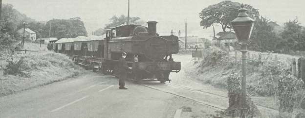 The featured image for this article is a photograph taken in August 1963 of an unidentified pannier tank crossing the A495 with a ballast train from Blodwell, heading for Llynclys Junction. One of the train crew is seeing the train across the crossing. An old gas lamp retains its red glass aspect to the road, GWR-style © Andrew Buckley. [1: p364]