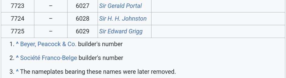 The table below (in 4 parts) comes directly from the Wikipedia article about the ’60’ Class locomotives. The information included in the table is taken from two important texts,, both published by David & Charles, one by Ramaer, [3: p91] the other by Durrant. [4: p190]
