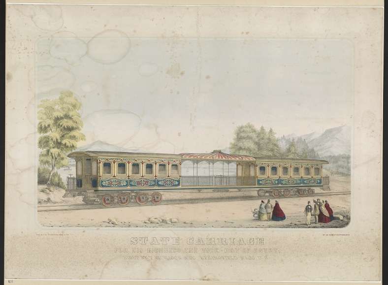 “Muhammad Ali died in 1848, and in 1851 his successor Abbas I contracted Robert Stephenson to build Egypt’s first standard gauge railway. The first section, between Alexandria on the Mediterranean coast and Kafr el-Zayyat on the Rosetta branch of the Nile was opened in 1854. [3: p12] This was the first railway in the Ottoman Empire as well as Africa and the Middle East. [4] In the same year, Abbas died and was succeeded by Sa’id Pasha, in whose reign the section between Kafr el-Zayyat and Cairo was completed in 1856 followed by an extension from Cairo to Suez in 1858. [3: p12] This completed the first modern transport link between the Mediterranean and the Indian Ocean, as Ferdinand de Lesseps did not complete the Suez Canal until 1869. [1]
