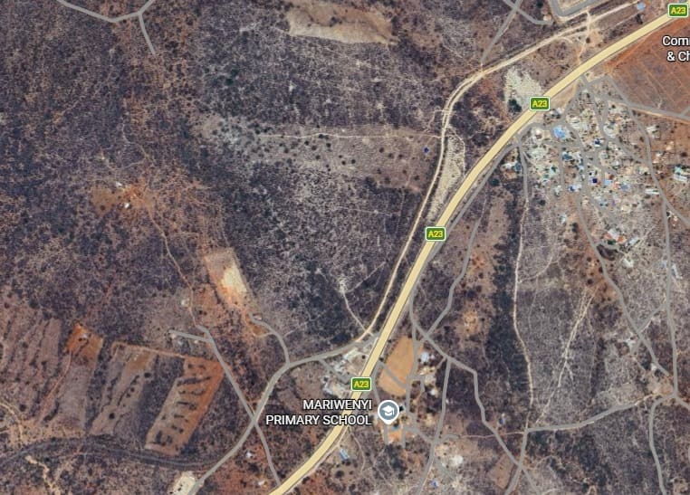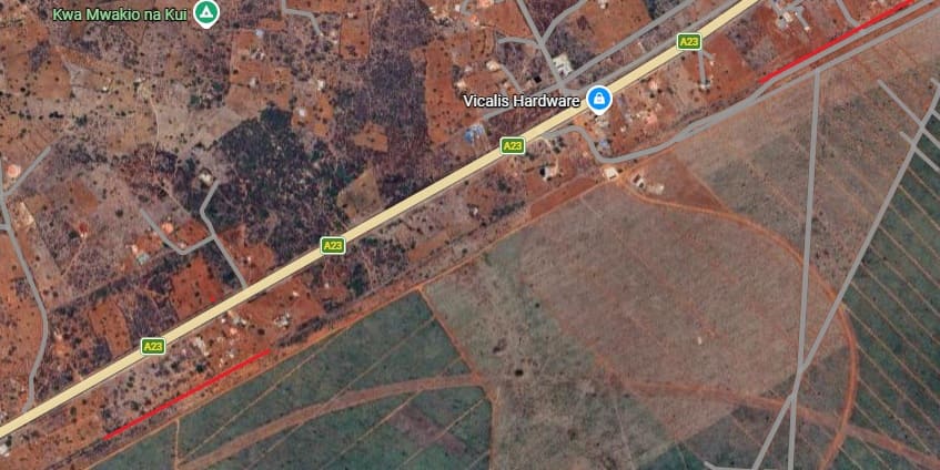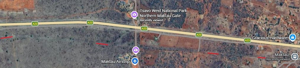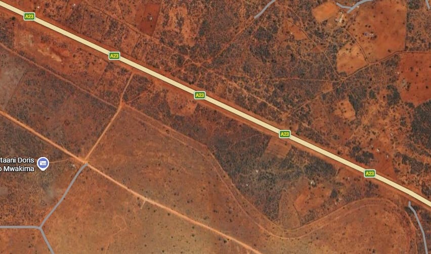 The crossing point on the Ziwani-Mtito Andei road. [Google Maps, April 2026]