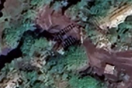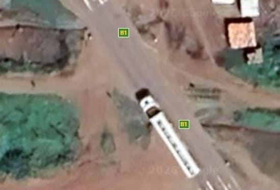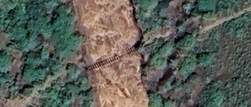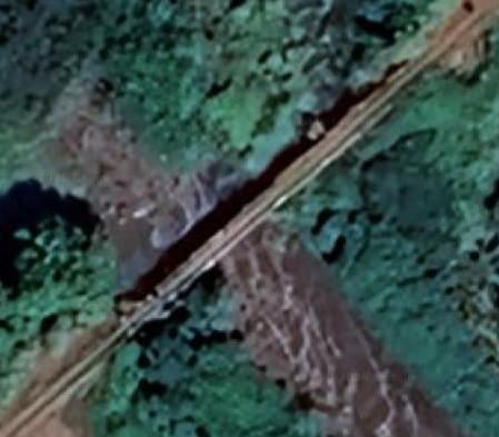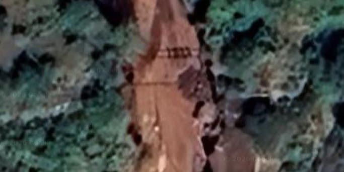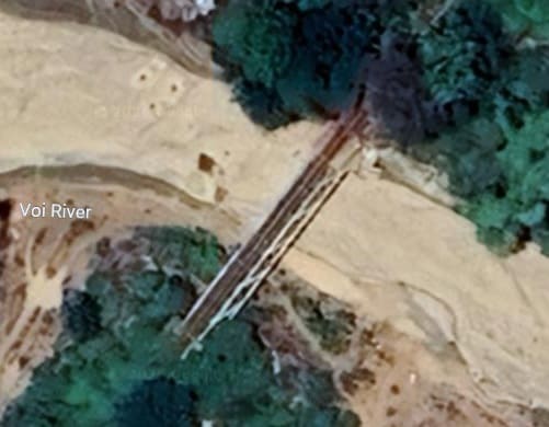 Another example of a river crossing where the the superstructure of the bridge/culvert has been washed away, [Google Maps, April 2026]
