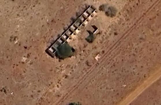 These ruins sit close to the line and appear to have been built to serve the line. They can just be made out towards the left edge of the satellite image immediately above. [Google Maps, April 2026]
