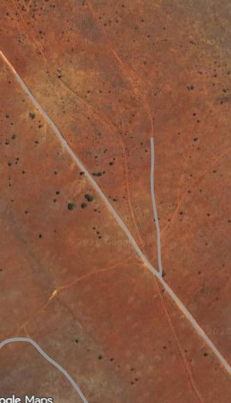 A similar area shown on Google’s satellite imagery. The line runs from the top-right to close to the bottom-left of the image. [Google Maps, April 2026]