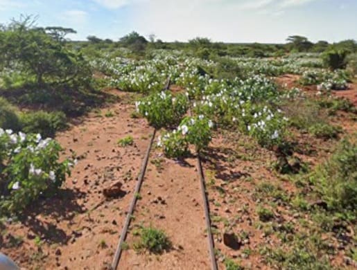 Looking Westsouthwest towards Taveta along the line of the old railway. Again, appear to no obvious traces of the railway. [Google Streetview, April 2024]