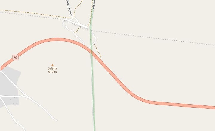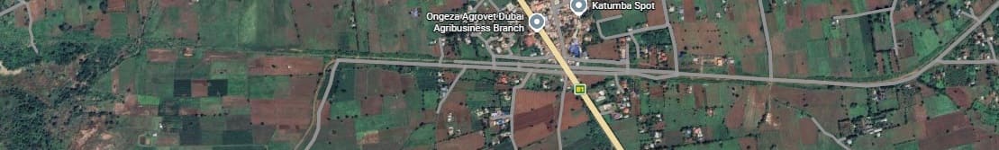A very short distance beyond the junction, the branch line turns away to the Southwest. Its route crosses the Standard-gauge Railway (SGR) at 90°. The crossing point can be seen on the left of the extract from the satellite imagery.