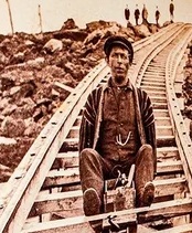There was a dare-devil practice undertaken by employees of the railway which “must have been one of the most sensational rail journeys in history. This was achieved by riding on ‘slide-boards’ (or ‘Devil’s Shingles’) – wood and metal seats, measuring about three feet by one, which fitted over the rack rail, and were equipped with crude hand-actuated brakes. Seated on one of these contraptions, members of the track crew could save much time in descents. The record time for the 3.25-mile trip, from the summit to Base Station, was 2 min. 45 sec., which speaks for itself. Following the death of an employee and the serious injury of another, this unorthodox method of transport was banned.” [1: p789]