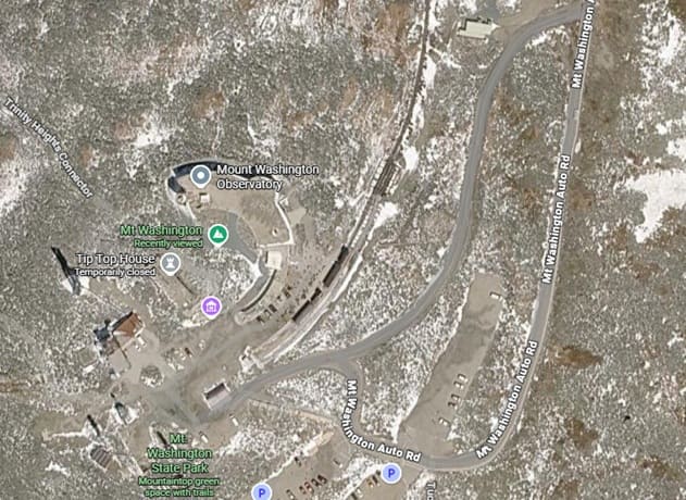 Legget, writing in 1954, continues: “The line curves quite considerably, finishing in almost a semi-circle as Summit Station is approached. At the top, the railway now maintains the famous Summit House, at which it is possible to stay overnight. A special observatory building is located here also, and it is now occupied throughout the winter, despite weather conditions which include winds up to velocities of 230 mph. Weather observations were started in 1870, and the top of Mount Washington has been well-known in meteorological circles since that time. Military installations have been added in recent years.” [1: p790]