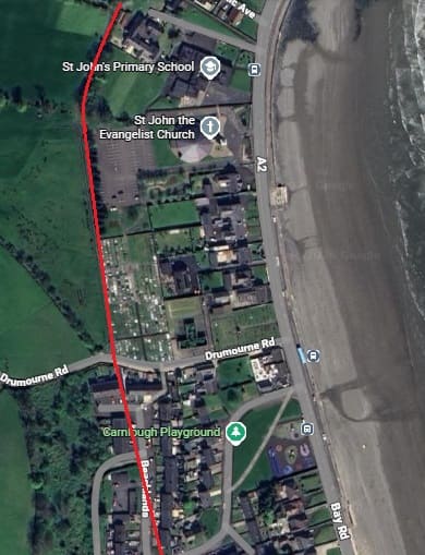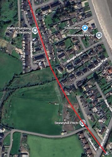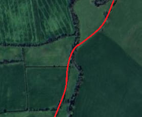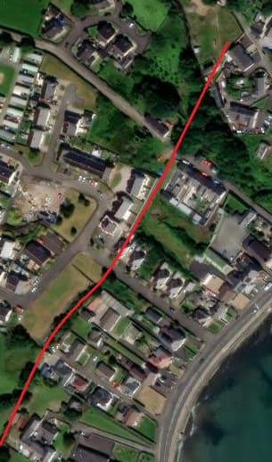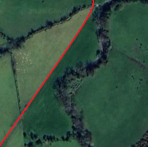 A very similar length of the line as shown on the adjacent OS mapping. [Google Maps, April 2026]