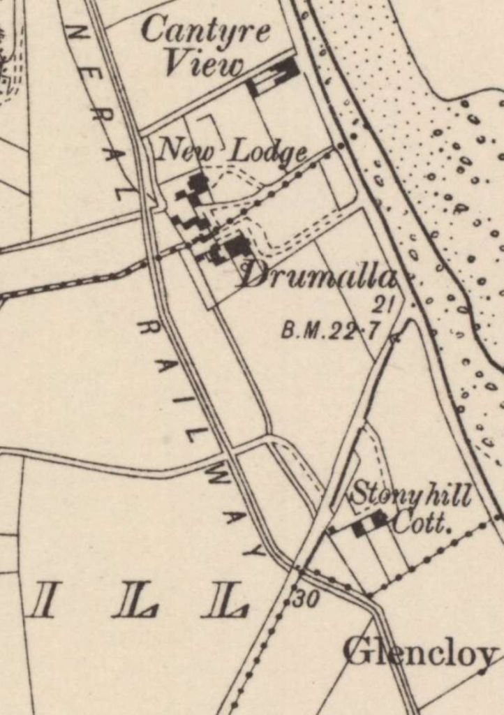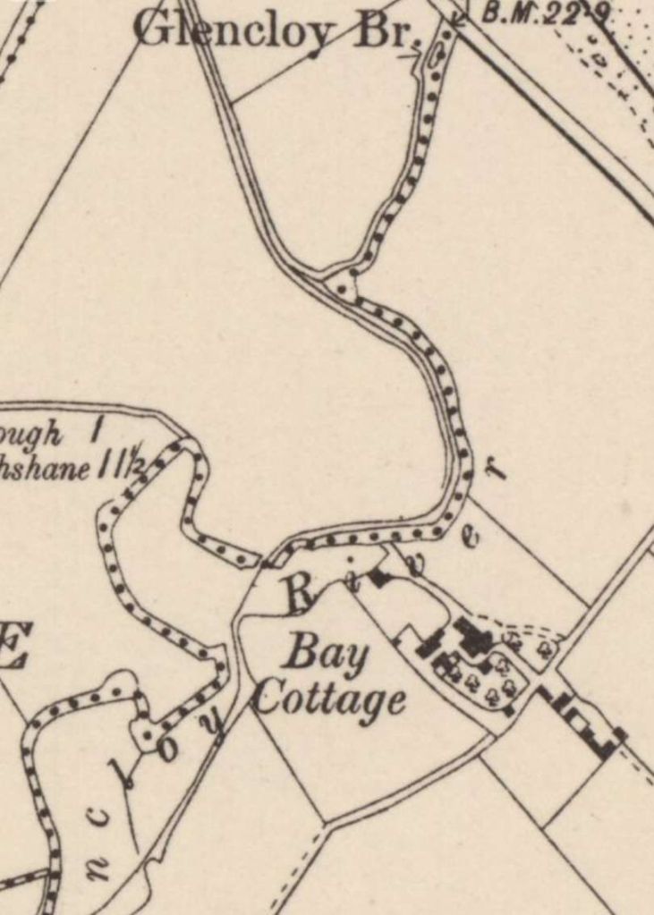 The railway ran along the West bank of the Glencloy River. It passed to the West of Bay Cottage, [13]