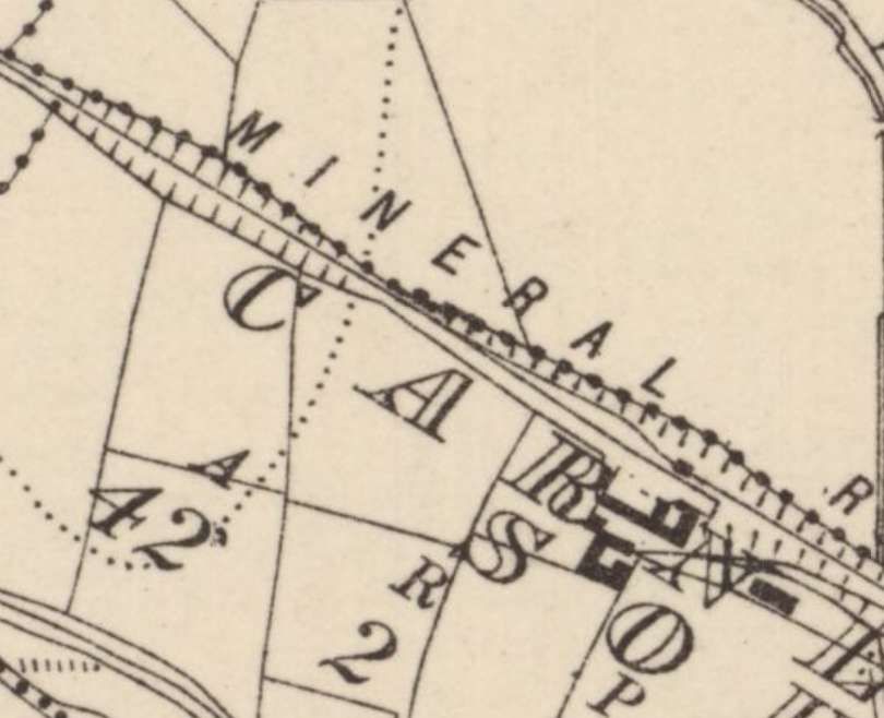 The first length of the 3ft 6in-gauge line from Whiting Mill to the quarry at Tullyoughter bridged the Carnlough River and ran down the West side of Harphall House. [13]