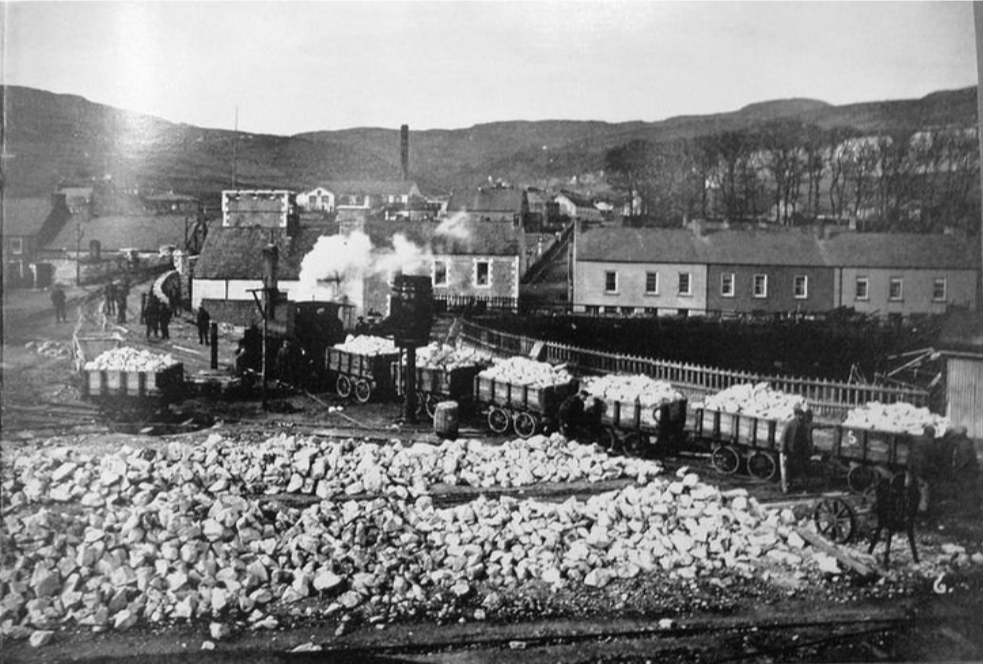 A mineral railway and enlarged harbour were constructed in 1853/1854 with a first significant cargo of limestone leaving the Carnlough harbour for Scotland in mid-August 1854.