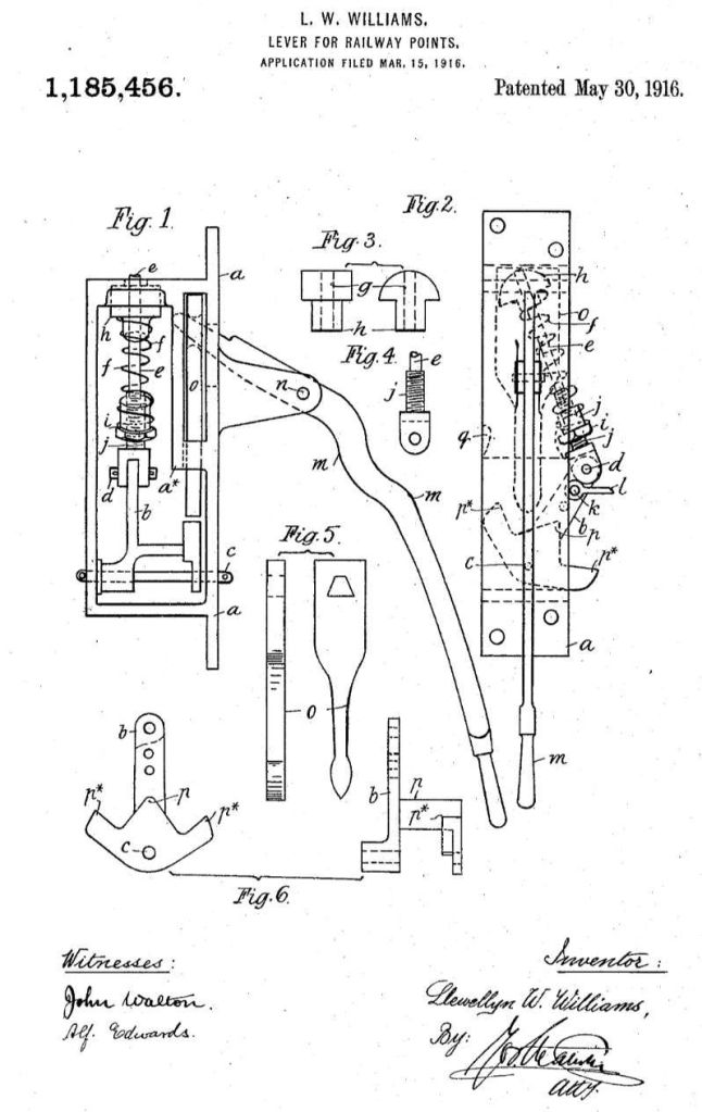 The Macnee patent was for a hand-operated point lever (or “lever box” as they were known in the trade). Although holding the patent, Macnee sold his manufacturing plant to Anderson Foundry, a significant supplier of rail chairs. Victorian patent, business relationships and tendering processes were fairly murky, but it is probable Daniel Macnee would have received his commision per unit (he was still working as a London based agent for Andersons) till his death in 1893 and afterwards to his heirs. He had business connexions with Dugald Drummond and Sons, the Caledonian Railway and the L&SWR. The levers could be positioned on either side as safety dictated, and the lever position would sit towards the V for the “main” line and pulled “back” for the diverging road. … These notes have been extracted from a post on the Caledonian Railway Association Forum (https://www.crassoc.org.uk/forum/viewtopic.php?t=38), accessed on 13th December 2025.