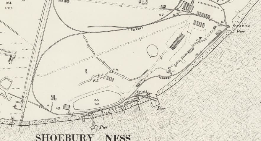 A separate, small-gauge, tramway existed on Maplin Sands in connection with the gun ranges.