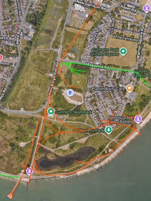 In addition to the standard-gauge military tramway, the area was criss-crossed by a series of narrow gauge tramways which were primarily industrial, serving the area’s extensive brickworks, coastal gun ranges, and military depots between the late 19th century and WWII.