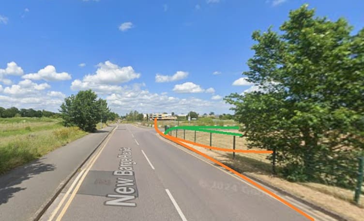 The line passes under what will be the B9014. [29]The same location with the B9104 crossing the line in the 21st century. [Google Maps, January 2026]The bridge seen from the Northeast. [Google Streetview, May 2022]Looking Northeast along the line from the B9014 bridge. [Google Streetview, May 2022]Looking Southwest from the same bridge. [Google Streetview, May 2022]