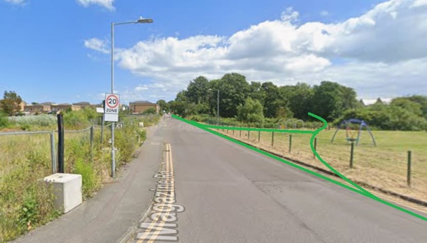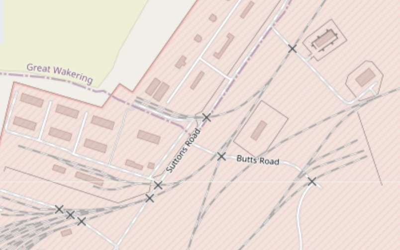 This image shows the area of the MOD depot immediately to the North of the rail junction shown in the street level photographs above. [17]