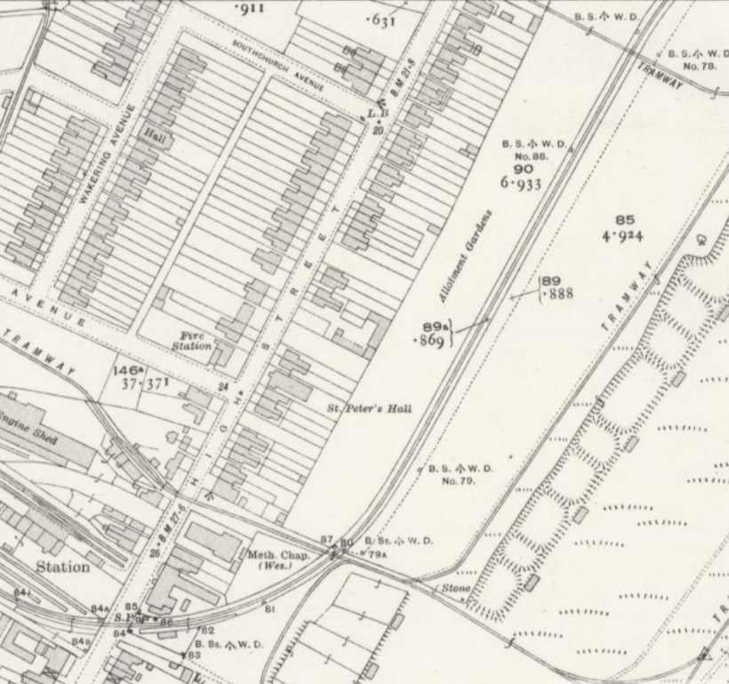 A significant 2ft-gauge tramway network connected East Beach with the area in and around Elm Road. [17]Tramways serving the brickworks in the area between Elm Road and the Railway Station in 1896. This map extract comes from the 25″ Ordnance Survey of 1896, published in 1897. Some of these tramways remained in use as late as the 1920s. [36]