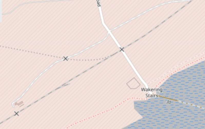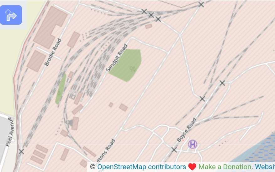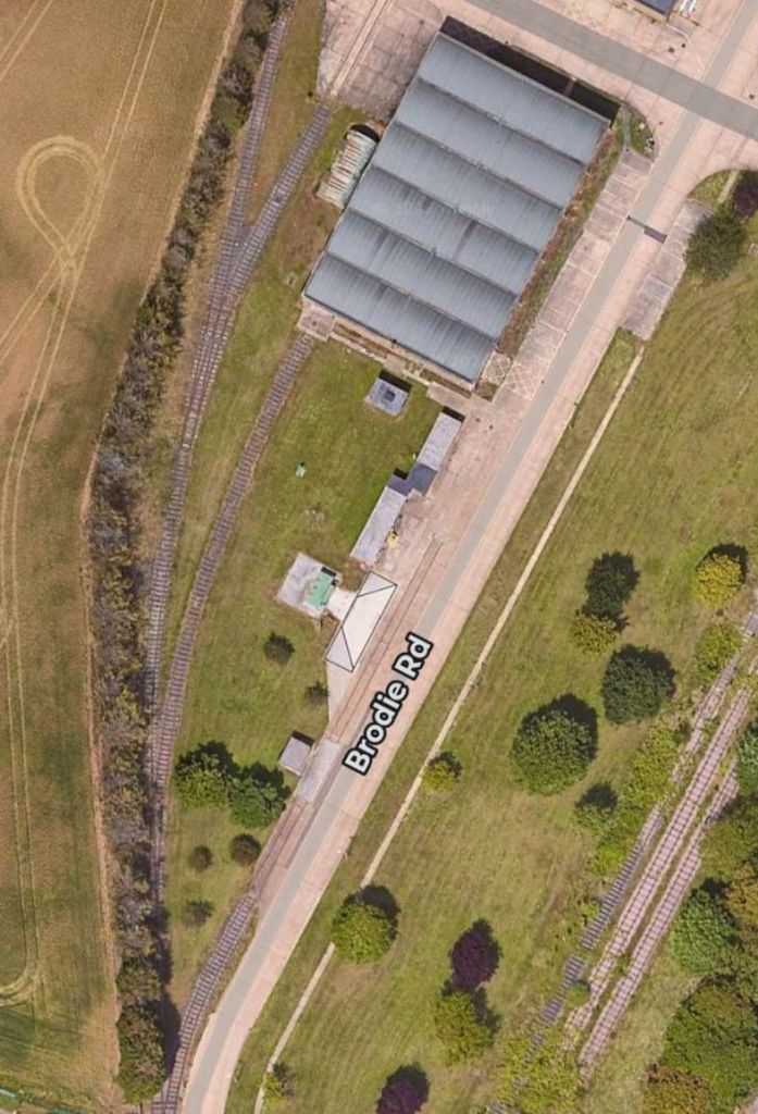 The series of extracts from OpenStreetMap.org below shows the railway layout within the military site North of the junction on the last Google Maps satellite image some distance above (near the crossing at Brodie Road). The layout is considerably different to that in place in the 1920s and at the beginning of WW2. These extracts purport to show what remains of the rail network in the 21st century…