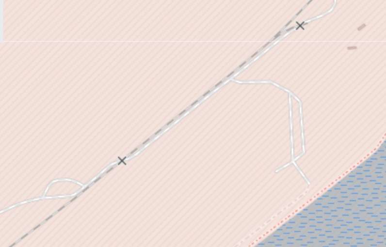 A first length of tramway ran from East Beach across the North side of the old settlement. [37]The line ran North with a short branch off it to the North-northwest. [37]The end of the short branch line appears on the extract, the main line heads North and another branch heads East. [37]The line continued to the North. [37]The end of the line was a short distance to the Northwest. [37]The branch line heading East towards the coast. [37]