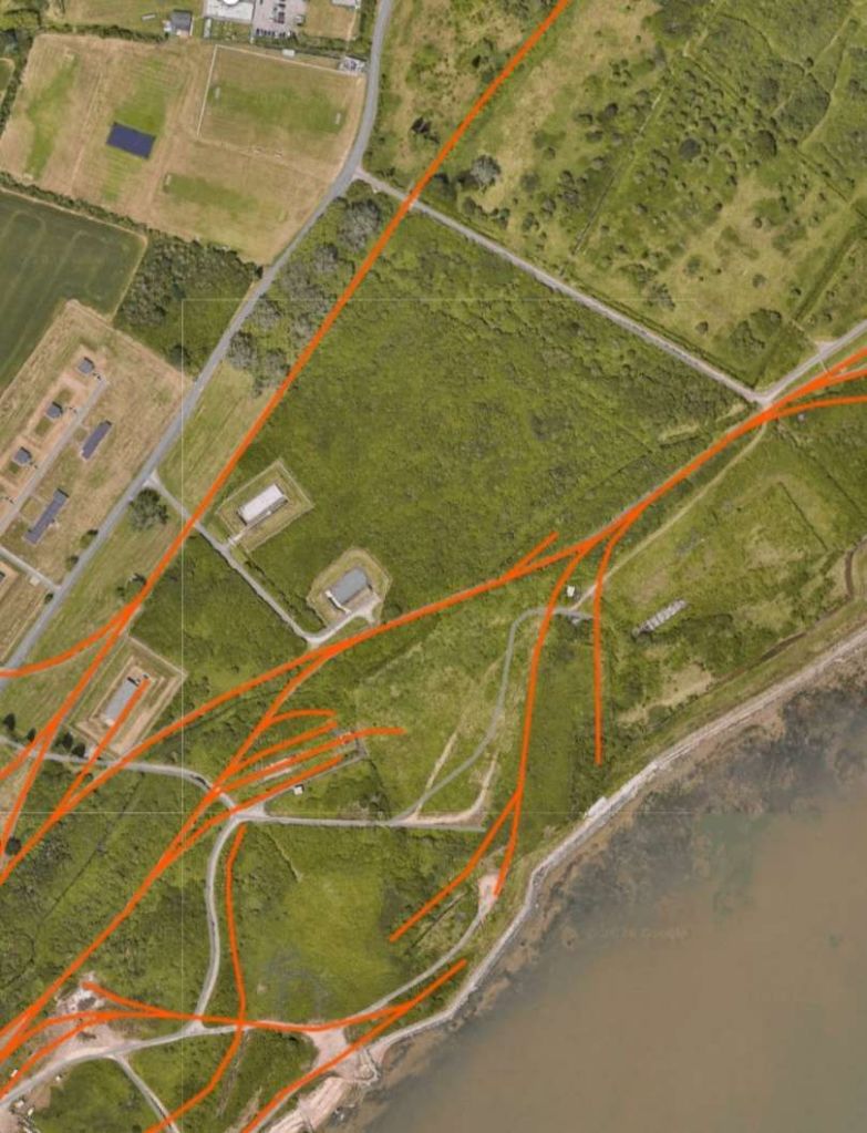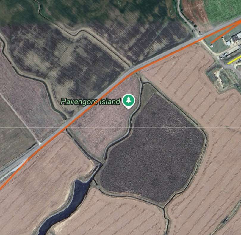 Three images extracted from the satellite imagery from RailMapOnline.com’s satellite imagery take us to the full extent of the line on Havengore Island. [16]