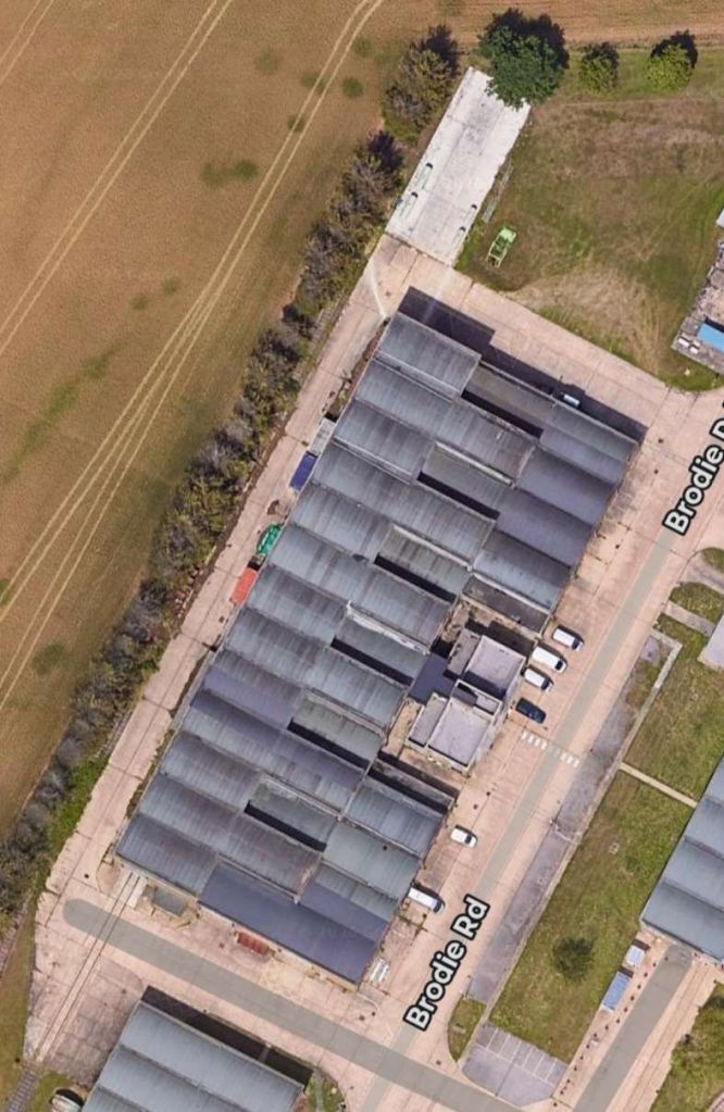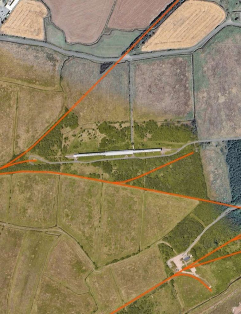The two buildings at the western edge of the MOD site and the lines that serve them. [Google Maps, February 2026]