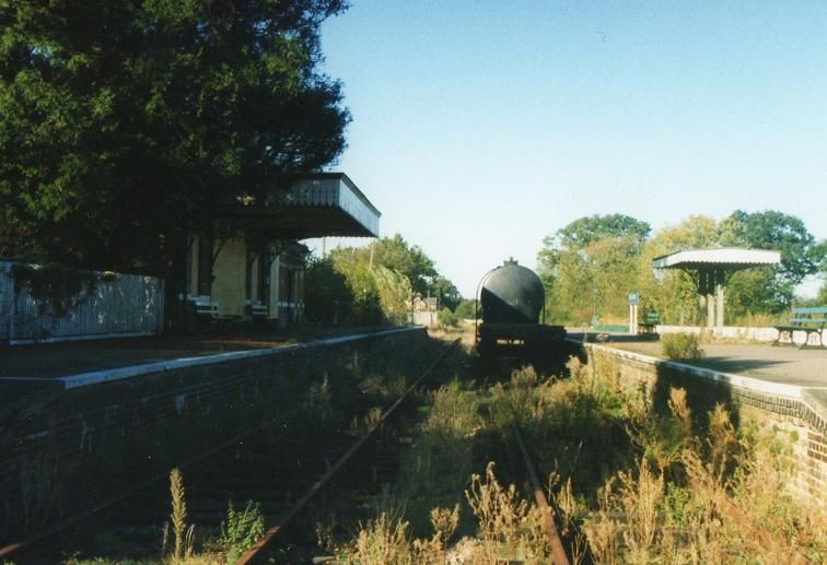 Diesels were introduced in the mid-1950s but rapidly increasing road transport competition meant that rain services in rural Norfolk became increasingly uneconomic. “In 1963, Richard Beeching recommended that the line from Dereham to Fakenham and Wells be closed and, in 1964, the last passenger train ran over this section. He also recommended that the railway from Norwich to Dereham and then to King’s Lynn be retained for express trains and freight. However, in 1968, the connection to King’s Lynn was cut, as part of the formation was wanted for improvements to the A47, and the remaining passenger services between Dereham and Norwich ended in 1969. Concerns had been [raised] in Parliament about the local roads being inadequate for local business needs, specifically the large maltings at Great Ryburgh, so tracks through the station remained in regular use as a goods-only line until the 1980s.” [6]